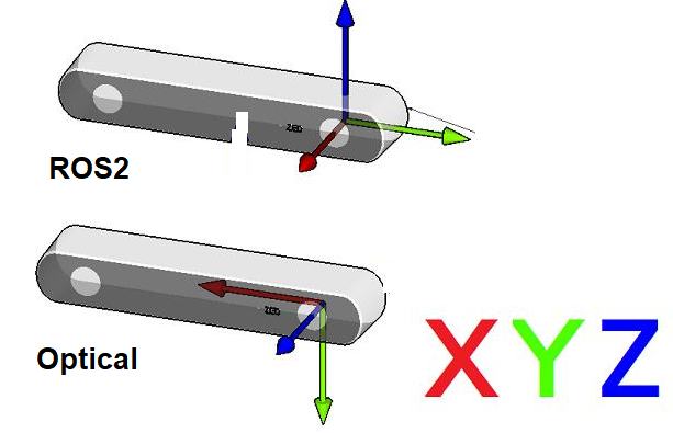 ROS2(Robot) vs Optical(Camera) Coordination Systems:
