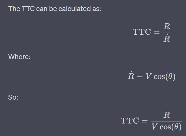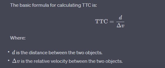 The Time-to-Collision (TTC) is calculated as: