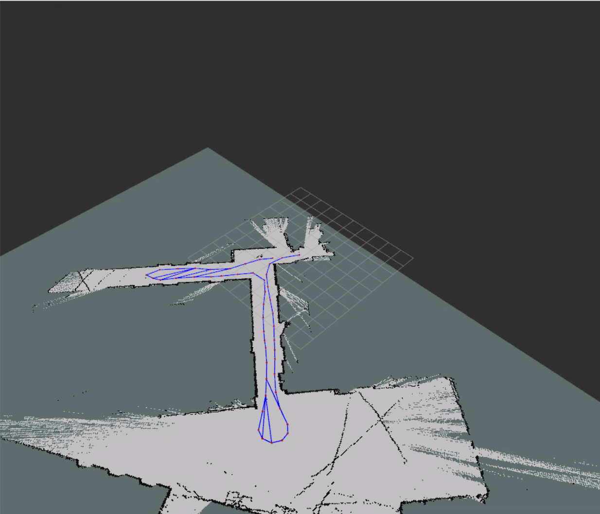 Example map created while driving the RoboRacer around the course. Stray scans outside the boundary are normal.